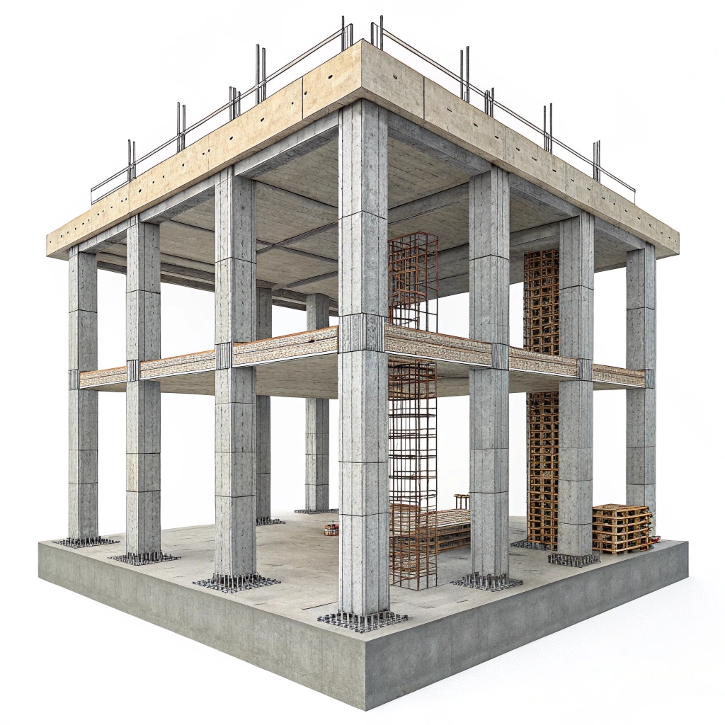 Сборно-монолитный железобетонный каркас представляет собой пространственную конструкцию, состоящую из сборных элементов заводского изготовления и монолитных бетонных участков, объединяющих эти элементы в единое целое. Колонны и ригели изготавливаются на заводе, доставляются на стройплощадку и монтируются в проектное положение. После установки арматурных выпусков и опалубки узлы соединений заполняются бетоном, создавая жесткое и надежное сопряжение.